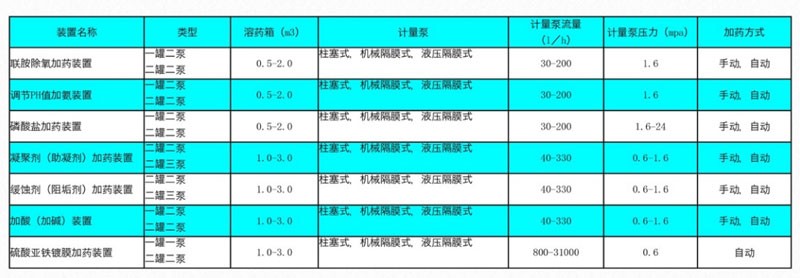 加藥系統是一套完整的設備,配料,混合,液體的輸送,在一個自動控制,原水,水,油田鍋爐,廣泛應用于發電廠集輸脫水處理系統,石油化工各種加藥系統和廢水處理系統。作為混凝劑,磷酸鹽,氨,石灰水,緩蝕劑,阻垢劑,劑等。加藥裝置主要由攪拌罐,溶液箱,計量泵,管道閥門,在機電一體化設備電氣控制柜組合平臺。